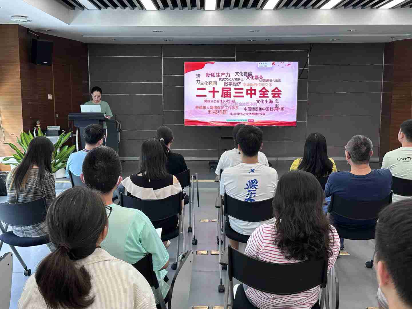 与会人员深入学习《决定》内容。。党的二十届三中全会提出必须增强文化自信,,发展社会主义先进文化,,,,弘扬革命文化,,,,传承中华优秀传统文化,,,加快适应信息技术迅猛发展新形势,,,,构建更有效力的国际传播体系,,,,这为广大文化产业工作者指明了奋斗方向。。。