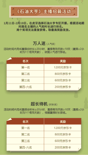 除了“油王”争霸赛,,,精英主播招募活动亦同步开启!!!!赛事分时长奖和人气奖,,奖励同样丰厚!!!