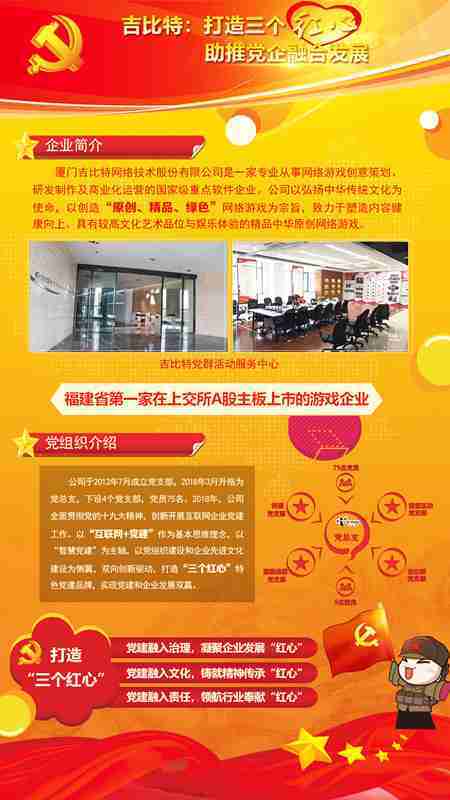 未来公司将全面学习贯彻习近平新时代中国特色社会主义思想和党的十九大精神,,,,持续强化“互联网+党建”的思维理念,,,以“智慧党建”为主轴,,以党组织建设和企业先进文化建设为侧翼,,,,双向创新驱动,,引领有信仰、、、、有情怀、、、、有价值的新时代游戏研发运营,,,在不断发展壮大的同时,,,,成为行业的“红色标杆”,,,实现党建和企业发展双赢。。