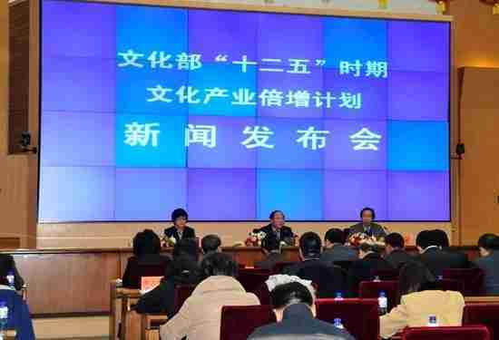 2月28日下午,,,文化部在京召开新闻发布会,,正式向社会发布《文化部“十二五”时期文化产业倍增计划》,,,,提出了 “十二五”期间文化部门管理的文化产业增加值年平均现价增长速度高于20%,,2015年比2010年至少翻一番,,,实现倍增的奋斗目标。。。。